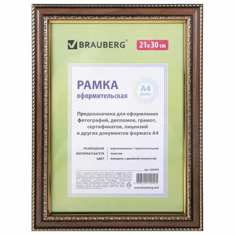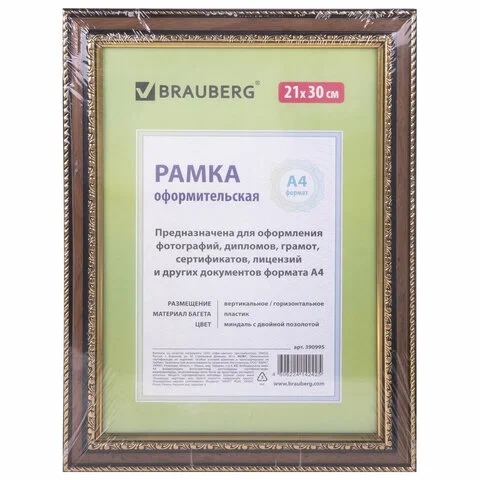Рамка Brauberg Hit4 миндаль с двойной позолотой, 21х30см, пластик