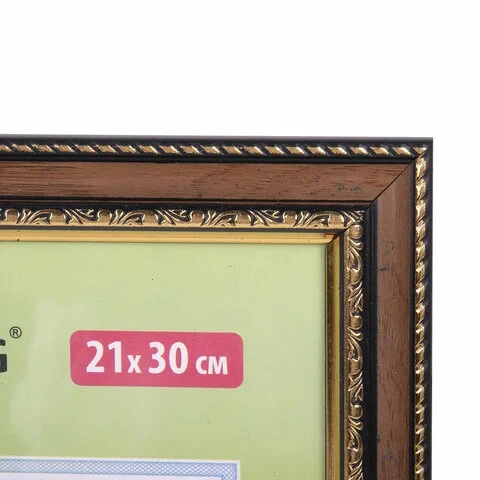Рамка Brauberg Hit3 темный орех с двойной позолотой, 21х30см, пластик