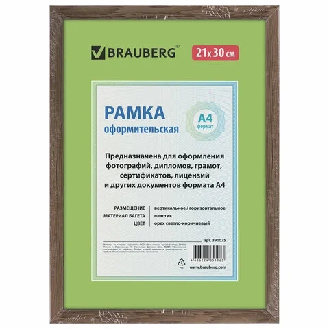 Рамка Brauberg Hit светло-коричневый орех, 21х30см, пластик