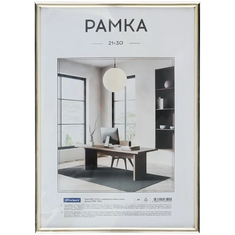 Рамка ПВХ 21*30см, OfficeSpace, небьющееся стекло, золото