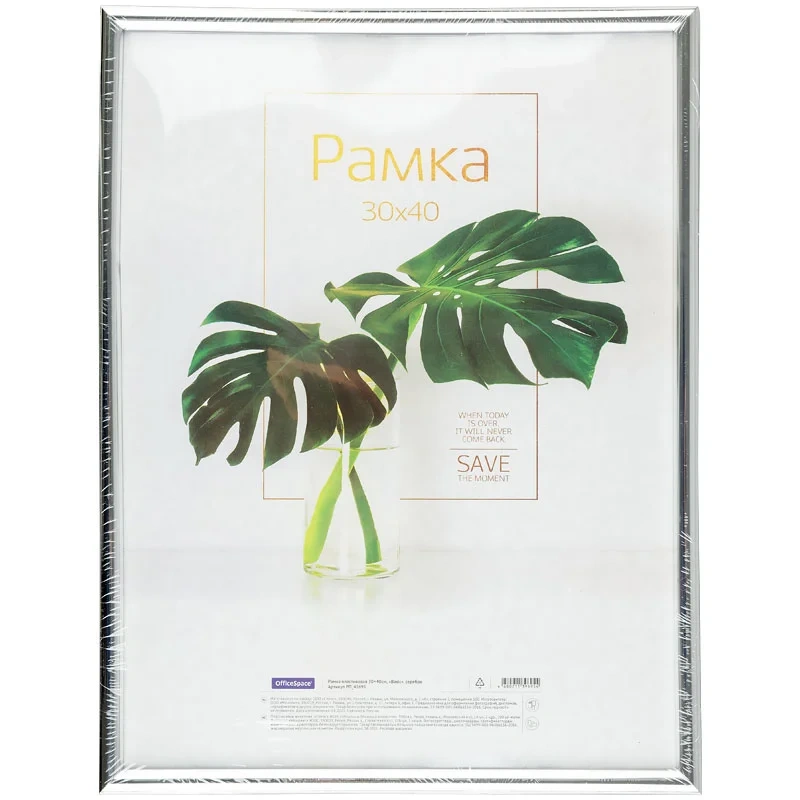 Рамка пластиковая 30*40см, OfficeSpace 'Basic', небьющееся стекло, серебро