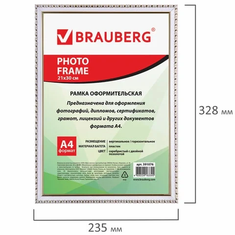 Рамка Brauberg Hit5 серебро с двойной позолотой, 21х30см, пластик