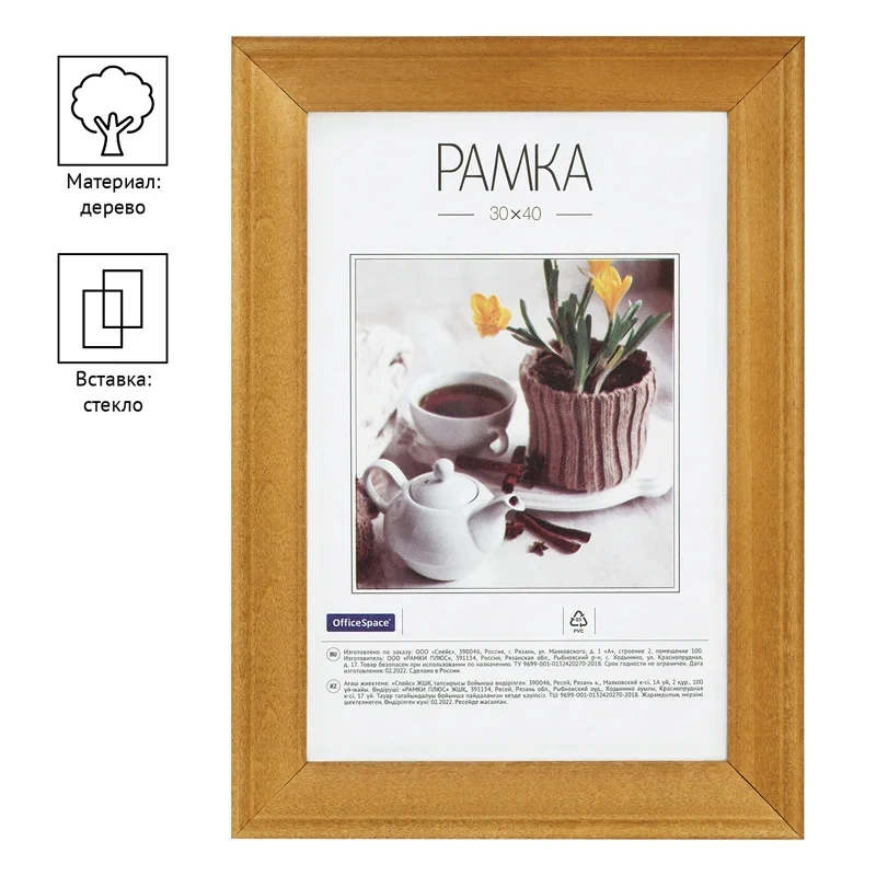 Рамка деревянная 30*40см, OfficeSpace, №2, дуб