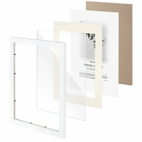 Рамка 30х40 см с паспарту 21х30 см, небьющаяся, багет 26 мм, МДФ, BRAUBERG 'Ambassador', белая, 3913