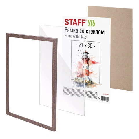 Рамка 21х30 см со стеклом, багет 16 мм, дерево, STAFF 'Sonata', цвет орех, 391359