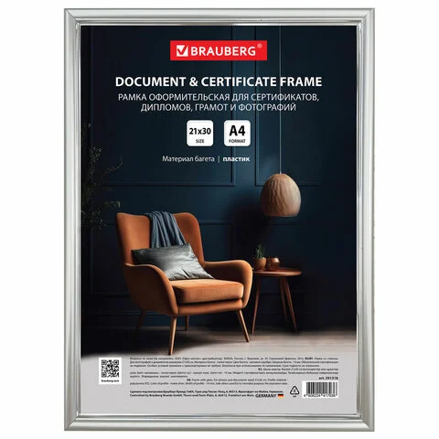 Рамка Brauberg Hit2 серебро, 21х30см, пластик