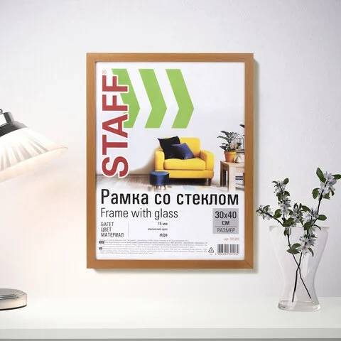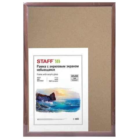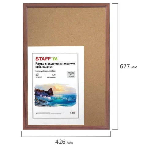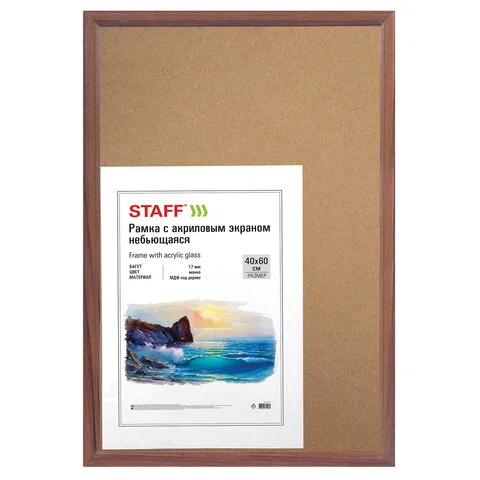 Рамка НЕБЬЮЩАЯСЯ 40х60 см, МДФ под дерево, багет 17 мм, мокко, акриловый экран, STAFF 'Carven', 3912