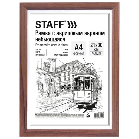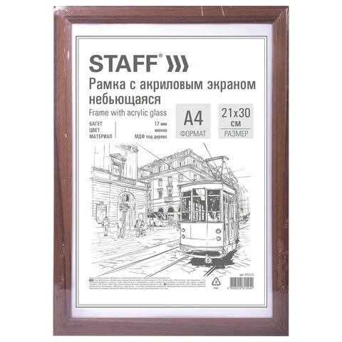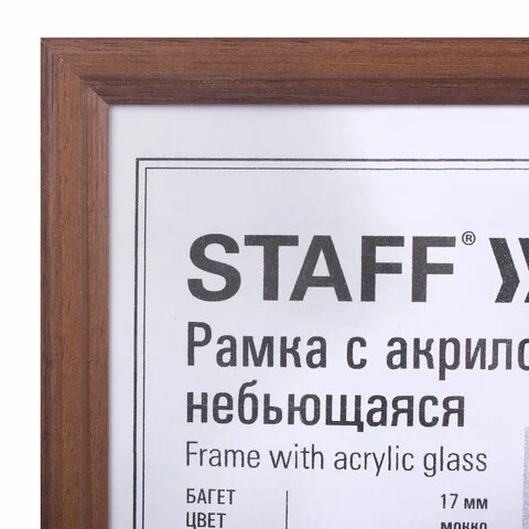 Рамка деревянная 21х30 см с акриловым стеклом, небьющаяся, багет 17 мм, мокко, STAFF 'Carven', 39121