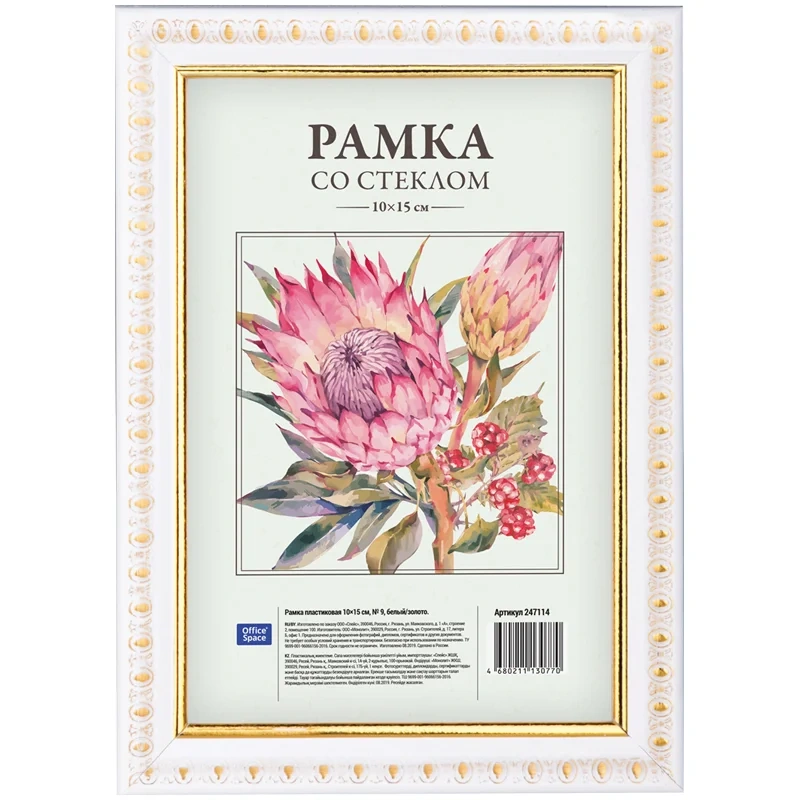 Рамка Officespace №9 бело-золотая, 10х15см, пластик