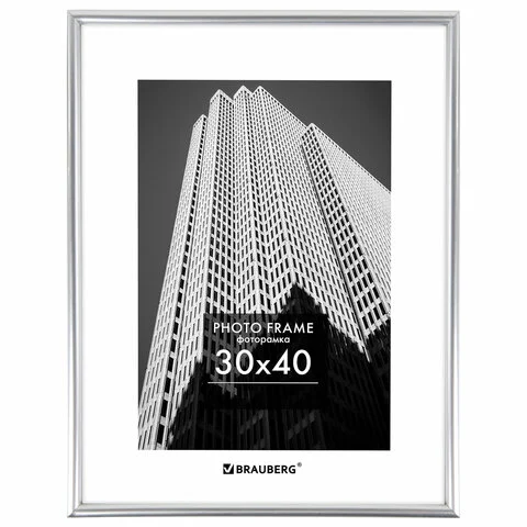 Рамка 30х40 см небьющаяся, багет 12 мм, пластик, BRAUBERG 'Original', серебристая, 391232