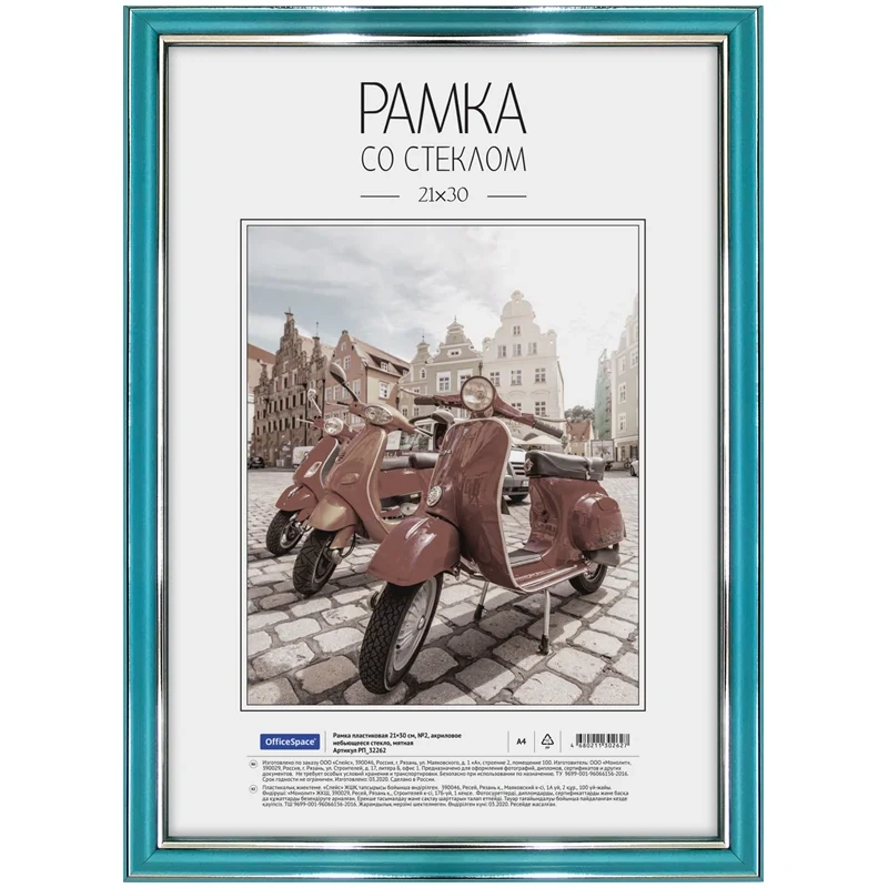 Рамка Officespace №2 мятная, 21х30см, небьющееся стекло
