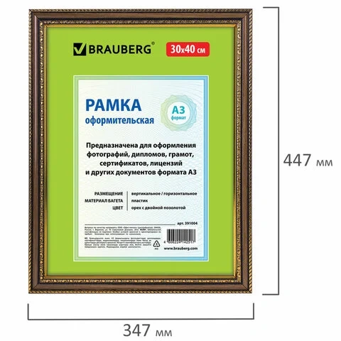Рамка Brauberg Hit4 орех с двойной позолотой, 30х40см, пластик