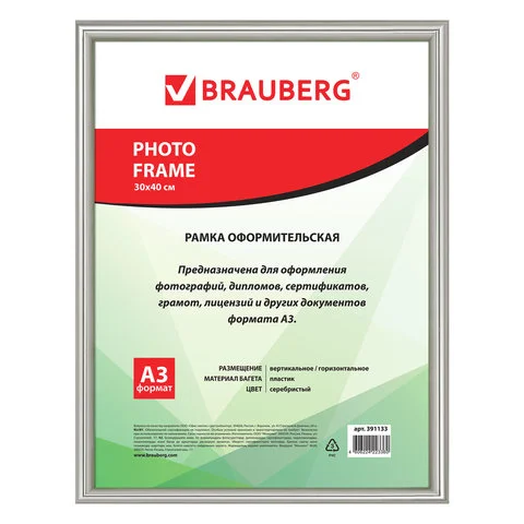 Рамка Brauberg Hit2 серебро, 30х40см, пластик