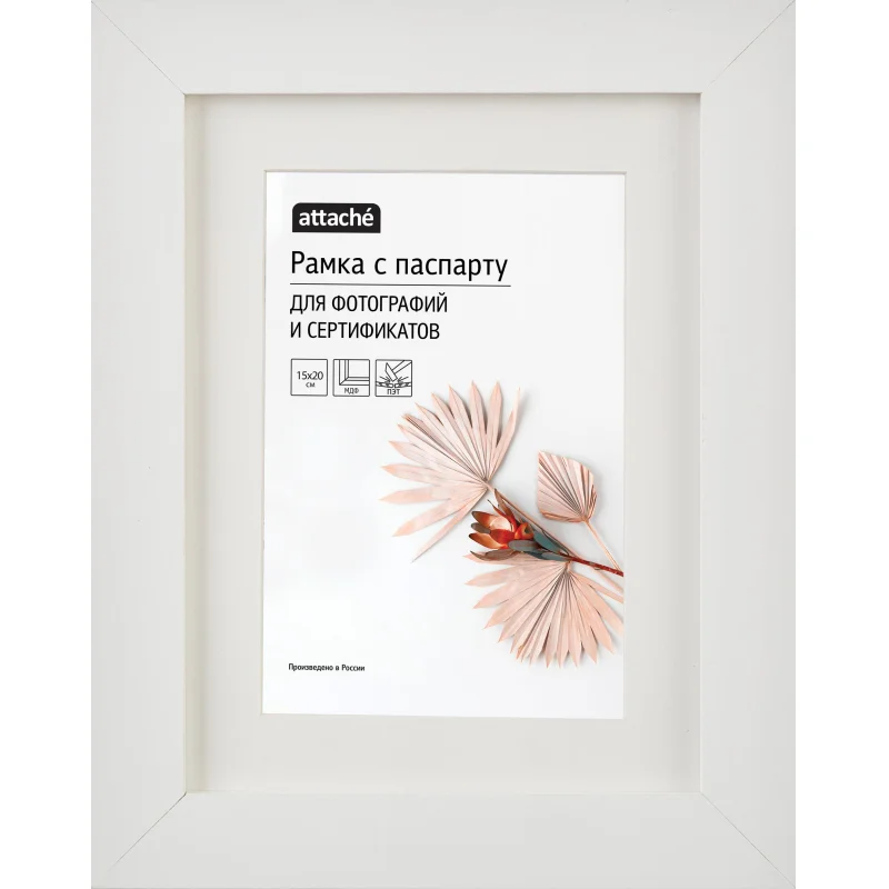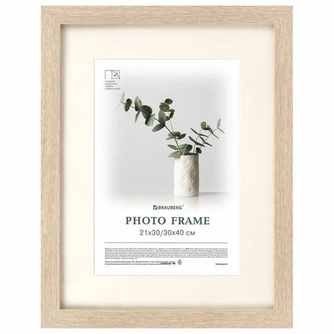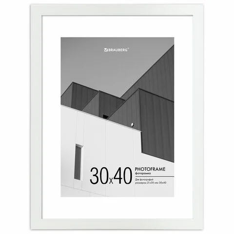 Рамка 30х40 см с паспарту 21х30 см, небьющаяся, багет 26 мм, МДФ, BRAUBERG 'Ambassador', белая, 3913