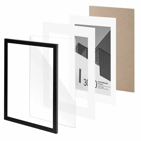 Рамка 30х40 см небьющаяся, КОМПЛЕКТ 2 штуки, багет 21 мм, МДФ, BRAUBERG 'Idea', черная, 391395