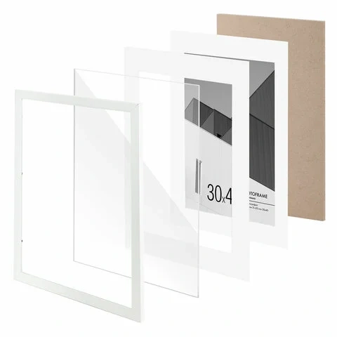 Рамка 30х40 см с паспарту 21х30 см небьющаяся, багет 20 мм, пластик, BRAUBERG 'New Age', белая, 3912