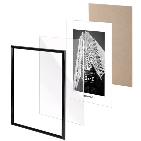 Рамка 30х40 см небьющаяся, багет 14 мм, пластик, BRAUBERG 'Original', черная, 391230