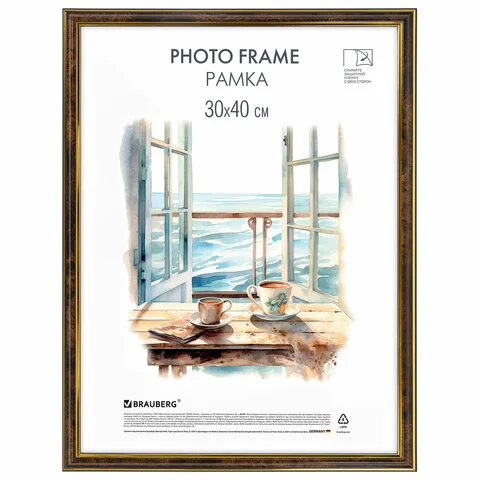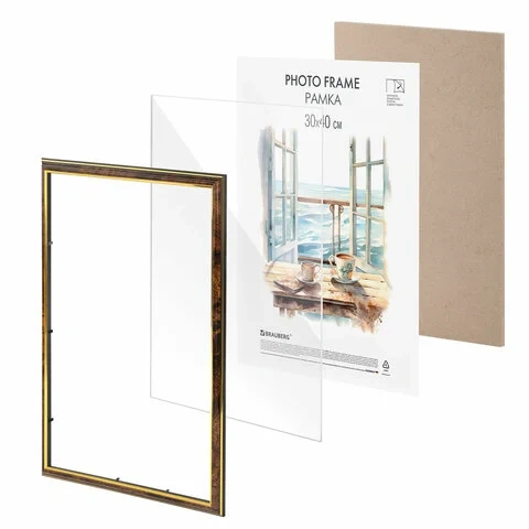 Рамка 21х30 см со стеклом, багет 14 мм пластик, BRAUBERG 'HIT2', матовое золото, 391380