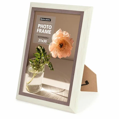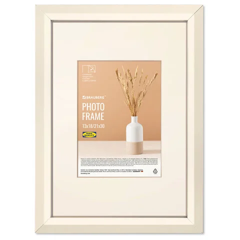Рамка 21х30 см небьющаяся, багет 30 мм, пластик, BRAUBERG 'Lambert', слоновая кость/капучино, 391251