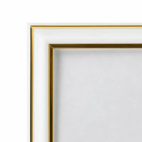 Рамка 30х40 см небьющаяся, багет 20 мм пластик, BRAUBERG 'HIT3', белая с двойной позолотой, 391383