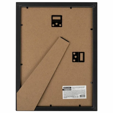 Рамка 21х30 см с паспарту 15х21 см небьющаяся, багет 5 мм, пластик, BRAUBERG 'Smart', черная, 391280