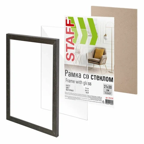 Рамка 21х30 см со стеклом, багет 18 мм МДФ, STAFF 'Grand', цвет венге, 391330