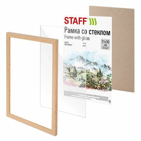 Рамка 21х30 см со стеклом, багет 16 мм дерево, STAFF 'Sonata', цвет натуральный, 391358