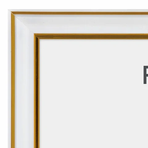 Рамка 21х30 см небьющаяся, багет 20 мм, пластик, BRAUBERG 'HIT3', белая с двойной позолотой, 391381