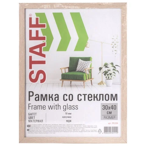 Рамка 30х40 см, белая STAFF 'Grand', багет 18 мм, стекло, МДФ, 391195