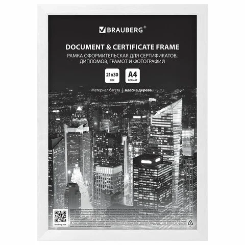 Рамка 21х30 см, дерево, багет 14 мм, BRAUBERG 'Elegant', белая, акриловый экран, 391294