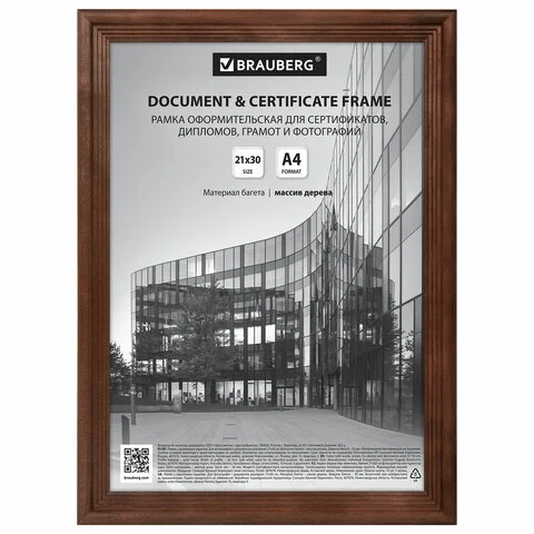 Рамка 21х30 см, дерево, багет 20 мм, BRAUBERG 'Business', махагон, акриловый экран, 391293