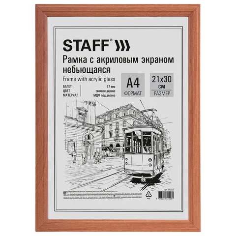 Рамка деревянная 21х30 см с акриловым стеклом, небьющаяся, багет 17 мм, янтарь, STAFF Carven, 391213