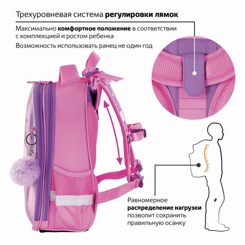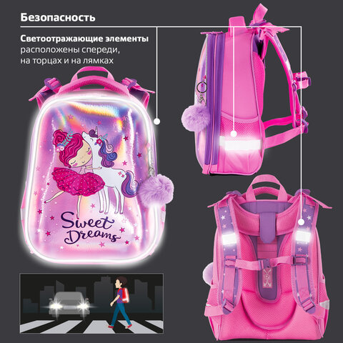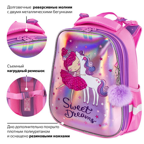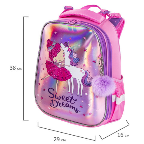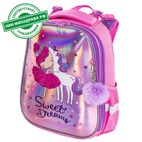 Ранец BRAUBERG PREMIUM, 2 отделения, с брелком, 'Unicorn', 38х29х16 см, 229900