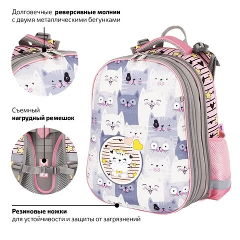 Ранец ЮНЛАНДИЯ EXTRA, с дополнительным объемом, 'Gray kittens', 38x29x18 см, 227843