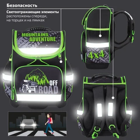 Ранец ЮНЛАНДИЯ WISE для начальной школы, Offroad, 37х29х15 см, 228814