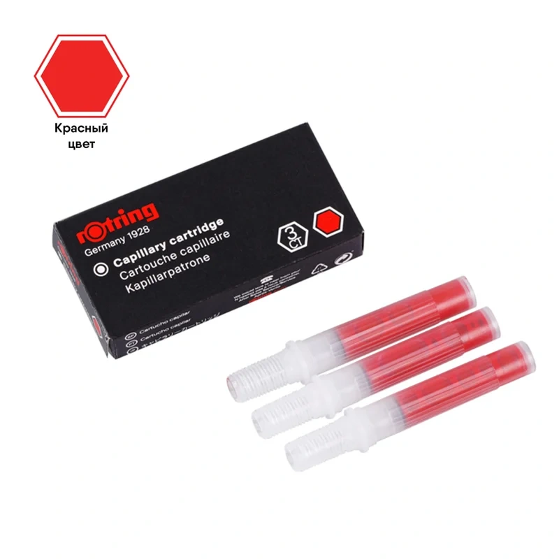 Чернила для рапидографа Rotring, красный, картридж, 3 шт., картон.уп.