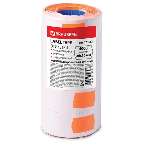 Этикет-лента волнистая Brauberg оранжевые, 25х16мм, 800шт, 5 рулонов