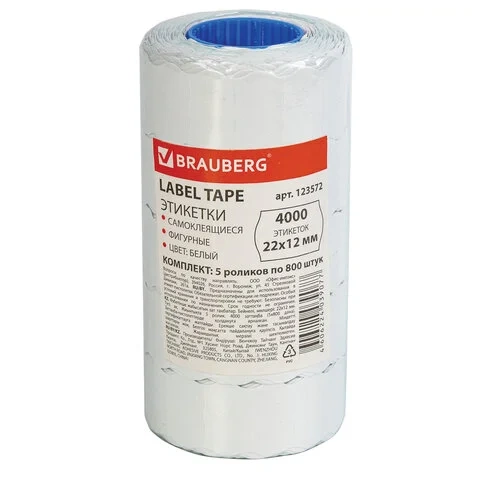 Этикет-лента волнистая Brauberg белые, 22х12мм, 800шт, 5 рулонов
