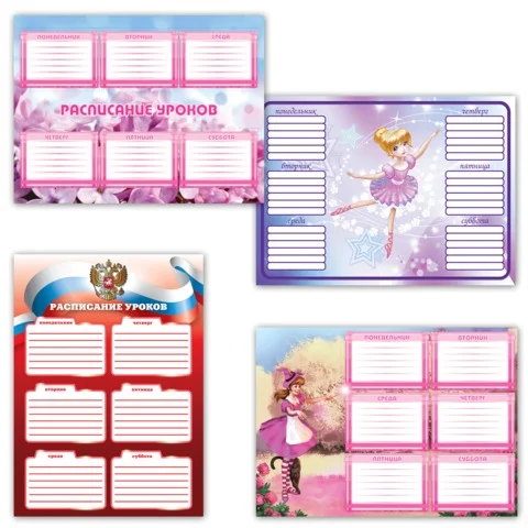 Расписание уроков А4, ПИФАГОР, для девочек, ассорти (4 вида), 127149