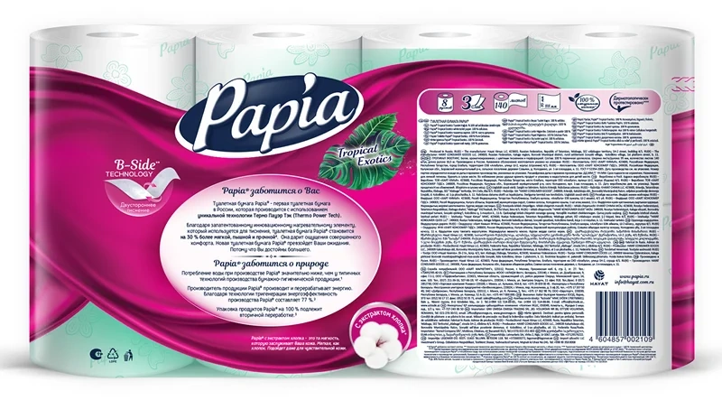 Туалетная бумага Papia Tropical Exotics 3-слойная, 8 рулонов