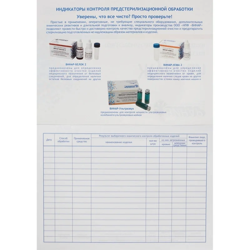 Журнал Винар для контроля и учета работы предстерилизационной очистки (форма 366)