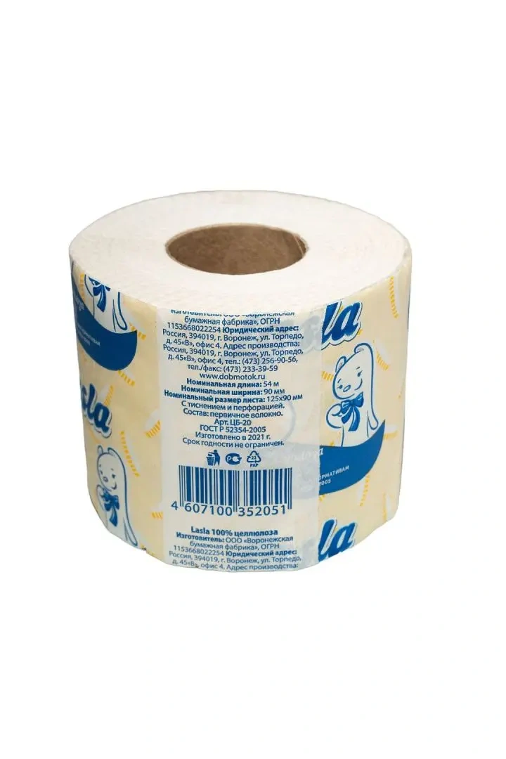 Туалетная бумага Lasla Классик белая, 1 слой, 54м, ЦБ20