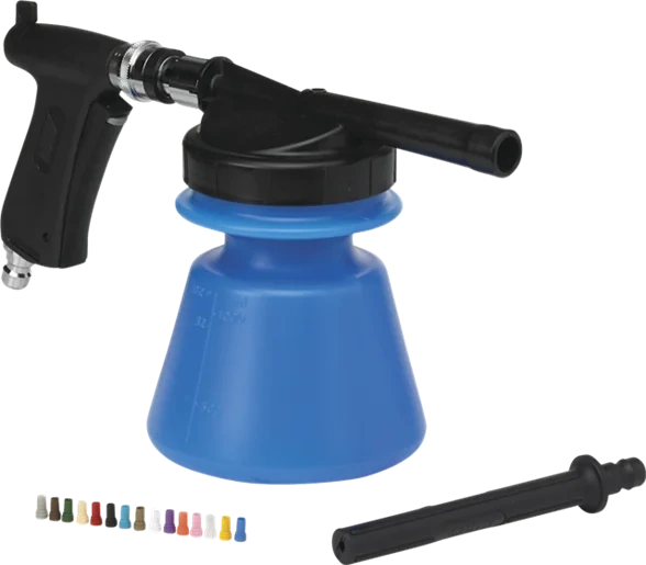 Предназначен для уборки на небольших производственных участках. Пена подается без аэрозоли при обычном давлении воды. Правильная пропорция от 0,4-10%. Химикаты для использования определяются согласно цветовому коду контейнера. C целью не допущения обратного тока воды используйте муфтовый обратный клапан 1.2 ' арт. 9340.