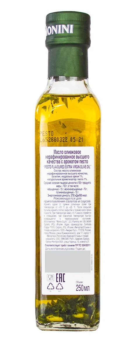 Масло оливковое Monini Extra Virgin нерафинированное, песто, 250мл