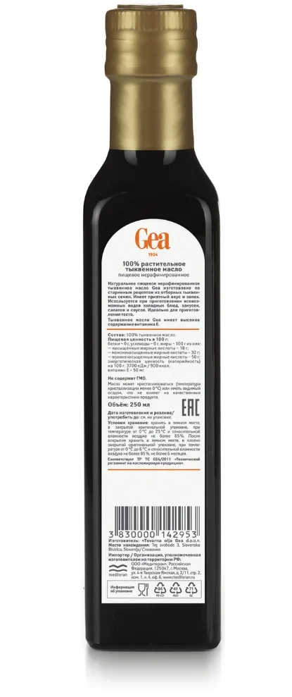 Масло тыквенное Gea нерафинированное, 250мл