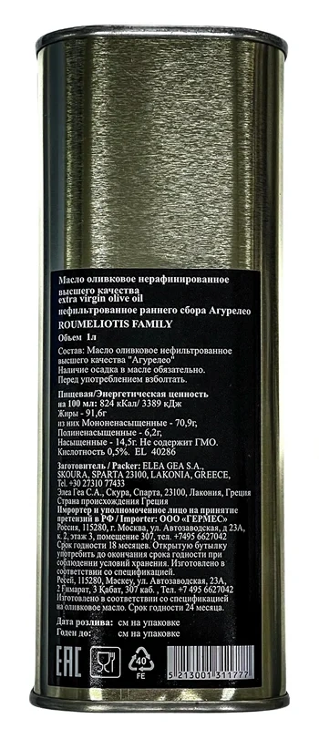Масло оливковое Roumeliotis Family нерафинированное, 1л