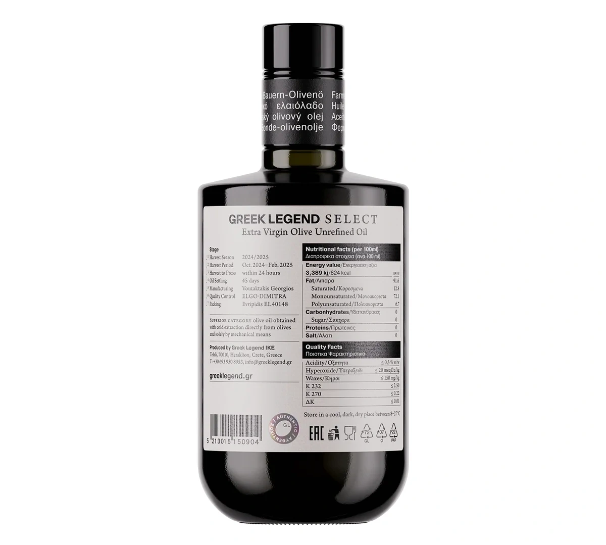 Масло оливковое Greek Legend Select Extra Vergine нерафинированное, 500мл