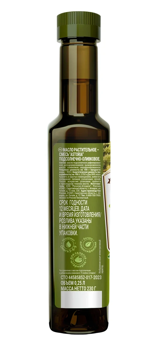 Масло подсолнечное Astoria с оливковым маслом, 250мл