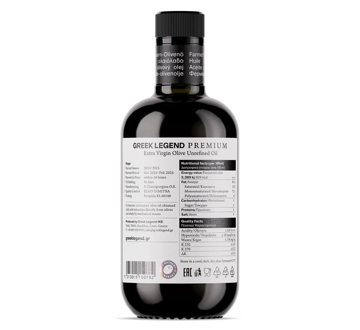 Масло оливковое Greek Legend Premium Extra Vergine нерафинированное, 500мл