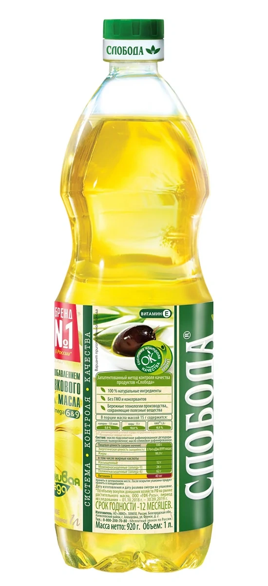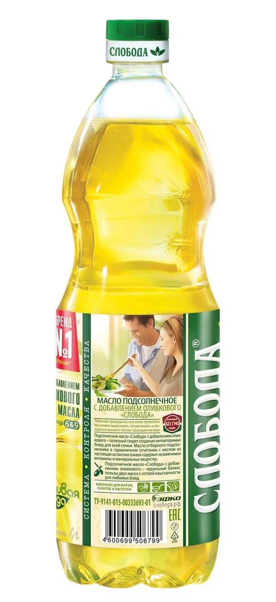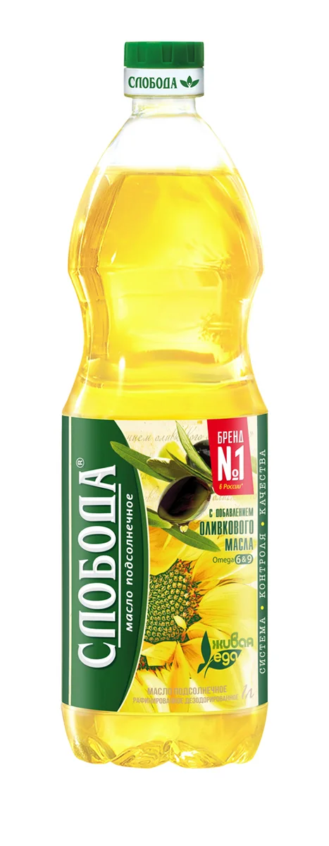 Масло подсолнечное Слобода с добавлением оливкового масла рафинированное дезодорированное, 1л